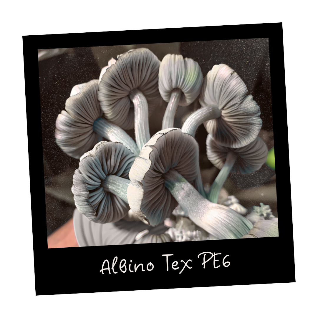Growkit Albino Tex PE6 Full Auto to unikalna hybryda Psilocybe cubensis, łącząca cechy dwóch cenionych genetyk – Albino A+ oraz PE6. Efektem jest stabilna, energiczna grzybnia o jasnym, porcelanowym wyglądzie i wyrazistym fenotypie. System Full Auto eliminuje konieczność zraszania i otwierania worka, gwarantując optymalne warunki obserwacji w warunkach domowych. Zestaw przeznaczony jest wyłącznie do celów kolekcjonerskich i badawczych.