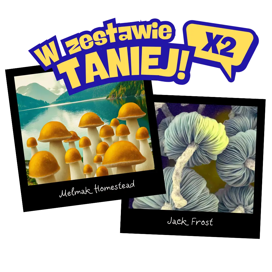 Zestaw dwóch wyjątkowych genetyk Psilocybe cubensis – growkit Melmak Homestead i growkit Jack Frost – stworzony z myślą o kolekcjonerach szukających zarówno dużego potencjału badawczego, jak i estetyki. Melmak Homestead to fenotyp znany z potężnych, karamelowych owocników i silnej genetyki Penis Envy, zaś Jack Frost (TAT × APE) to czysto albinotyczna linia o śnieżnobiałych kapeluszach i charakterystycznym niebieszczeniu. Oba growkity mają po 2600 ml podłoża i wykonane w technologii Full Auto – co oznacza zero zraszania, pełna automatyzacja i optymalne warunki bez wysiłku. Idealne do dokumentacji mikroskopowej, pracy nad fenotypami i rozbudowy domowej biblioteki genetycznej magicznych grzybów.